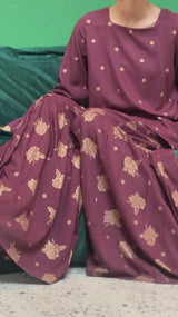 Printed short shirt with a square neckline, featuring gota tassel detailing at the back. Paired with a floral printed gharara for a festive, playful finish.