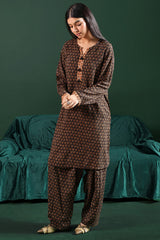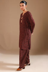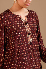 A classic-fit printed shirt with a round neckline and V-slit, adorned with tassel detailing along the front placket. Paired with a matching printed classic-fit shalwar for a classic look.