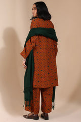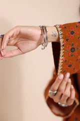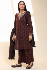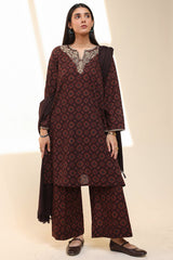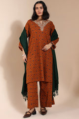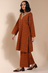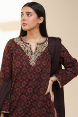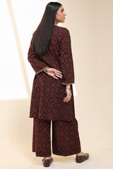 Classic-fit printed shirt with a round neckline and V-slit, adorned with delicate embroidered detailing on the neckline and sleeve hems. Paired with matching printed culottes.