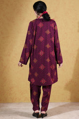 Classic-fit printed paneled shirt, detailed with subtle bead embellishments along the front slit. Paired with matching printed straight-fit trousers, finished with side slits and button detailing.