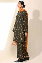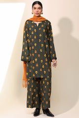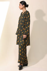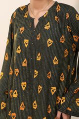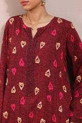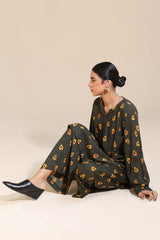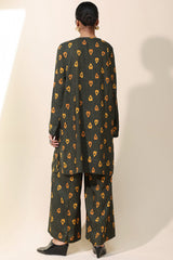 Classic-fit printed shirt with a round neckline and V-slit adorned with delicate bead detailing along the front slit. Paired with matching printed culottes.
