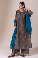 Gul-embroidered relaxed-fit shirt with a round neckline, featuring subtle gathers. Delicate cross-stitch embroidery enhances the artisanal charm. Finished with scalloped sleeve hems and paired with culottes adorned with embroidered scalloped borders.