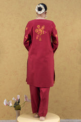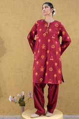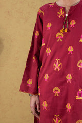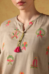 Embroidered classic-fit shirt with playful tassel detailing at the neckline and delicate stitch accents on the sleeve hems. Paired with a classic-fit shalwar for an elegant look.