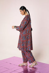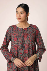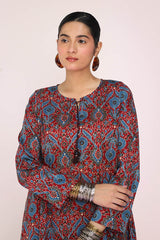 A classic-fit Ajrak-inspired kurta featuring a round neckline with a V-slit, adorned with delicate tassel detailing. The intricate prints celebrate heritage, while the matching classic-fit shalwar completes the timeless look with effortless charm.