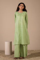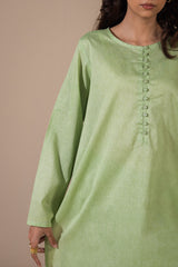 Classic-fit shirt with a round neckline, featuring loop buttons along the front slit and designed with relaxed shoulders. Paired with matching culottes for an easy, refined look.