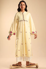 Hand-block printed classic-fit paneled shirt with a low band neckline and buttoned front placket, designed with neat pleats on the bodice. Finished with rose-printed turn-up sleeves. Style it with your favourite Generation bottoms for an easy, refined look.