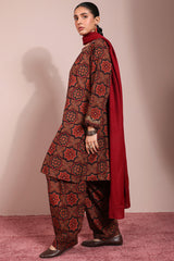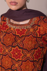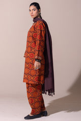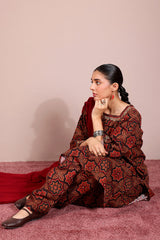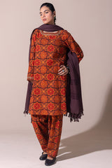 A classic-fit printed shirt with a square neckline, adorned with delicate embroidered detailing on the neckline and sleeve hems. Paired with a matching printed classic-fit shalwar.