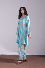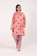 A loose-fit printed kurta featuring a collared neckline, paired with a complementary classic-fit shalwar for an easy, everyday look.