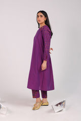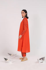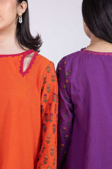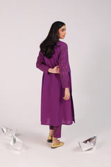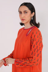 A hand block-printed paneled shirt, designed with a side slit and adorned with subtle embroidered detailing. The sleeves are finished with delicate embroidery. Paired with matching straight-fit trousers for a graceful and timeless look.