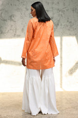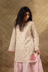 Embroidered paneled kurti designed in a relaxed silhouette, detailed with a round neckline and V-slit, and finished with fine embroidery for a refined, understated look. Style it with your preferred Generation bottoms.