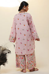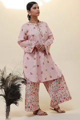 Classic-fit printed shirt with a round neckline and V-slit, adorned with delicate sequin detailing. Finished with a rounded shirt hem. Paired with coordinated printed culottes.