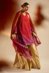Classic-fit shirt with a softly defined V neckline, accented with fine embroidered detailing along the neckline. Rendered in tonal palette, Styled with a matching dupatta, finished with jacquard borders and refined detailing along the edges. Comes with an inner for added comfort and ease.