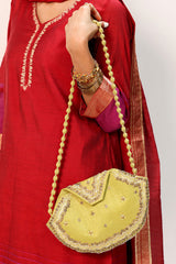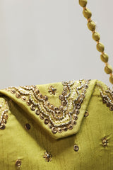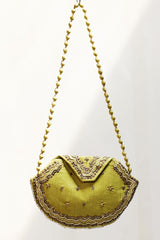 Embroidered potli featuring intricate bead and sequin detailing on a structured silhouette. Designed with a statement flap and a delicate strap, adding a festive and polished touch to any look.
