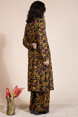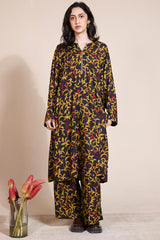 Classic-fit printed shirt adorned with delicate embroidered detailing on the neckline and sleeve hems. Paired with matching printed culottes.