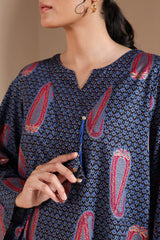 A classic-fit printed shirt with a round and V neckline adorned with fun tassel detailing. Features pleat detailing at the back for a graceful silhouette. Paired with a matching printed classic-fit shalwar.