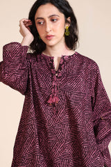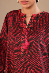 Classic-fit printed shirt with a round neckline and V-slit adorned with tassel detailing. Finished with a round shirt hem and paired with a matching printed classic-fit shalwar.