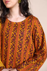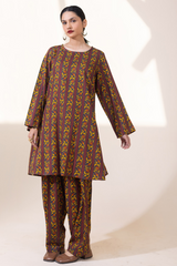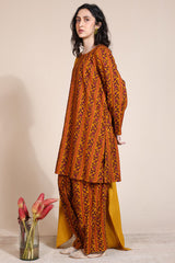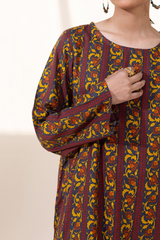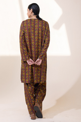 Classic-fit A-line printed shirt with a round neckline. Paired with a matching printed classic-fit shalwar.
