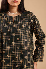 Classic-fit printed shirt with a round neckline and V-slit, paired with matching printed culottes.