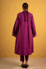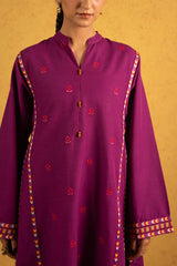 Embroidered paneled relaxed-fit kurta with a low band neckline and a V-slit, adorned with delicate bead embellishments. Paired with classic straight-fit trousers.