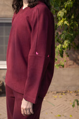 Snug, relaxed-fit V-neck sweatshirt designed with drop shoulders, wide sleeves, and an embroidered heart on the arm for a sweet, minimal touch. Paired with soft sweatpants for a comfortable, laid-back look.