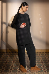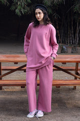 Cozy-fit sweatshirt paired with plush sweatpants featuring side pockets, crafted in soft cotton knit for all-day comfort. The sweatshirt features a round neckline with a V-insert crew detail, drop shoulders, and an embroidered watermelon motif for a fun, playful touch. Finished with ribbed sleeve hems.