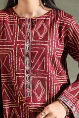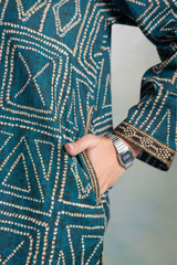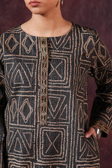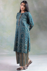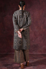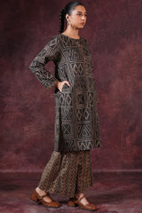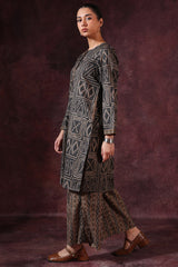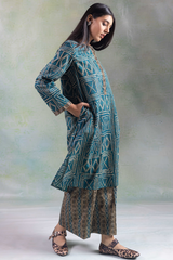 A classic-fit printed shirt with a round neckline and buttoned front placket, featuring side pockets. Paired with printed culottes for an effortlessly chic look.