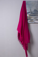 Textured woven shawl adorned with loose tassels along the edges for a touch of rustic charm.