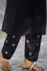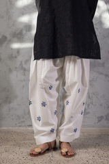 Hand-embroidered classic-fit shalwar with a relaxed silhouette, featuring delicate scattered motifs. Designed for a comfortable fit and easy wear.