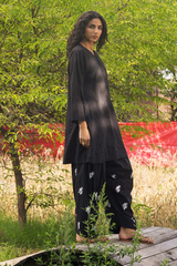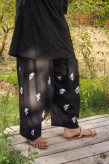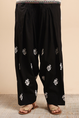 Hand-embroidered farshi shalwar, designed with a voluminous silhouette, adorned with intricate handcrafted detailing.