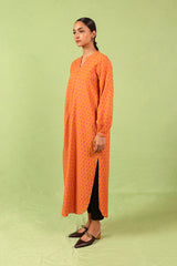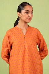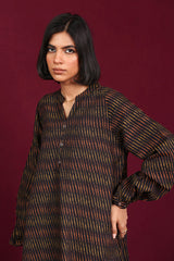 A loose fit printed shirt with raglan cuffed sleeves and rounded shirt corners, featuring metal eyelet detailing on shirt hemline.
