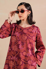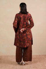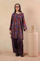 A printed relaxed-fit shirt with side pockets for functionality and ease. Paired with complemented farshi shalwar featuring stitching detail on the ankle hemline.