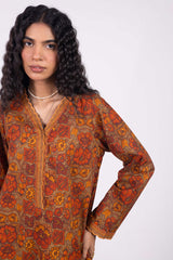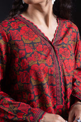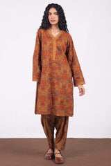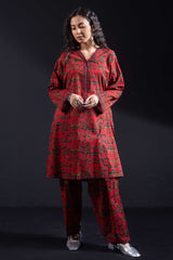 A relaxed fit printed shirt with a V-neckline finished with scalloped detailing along the neckline and sleeve hems. Paired with a printed classic-fit shalwar.