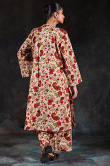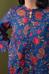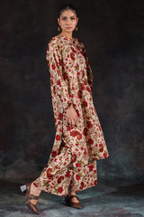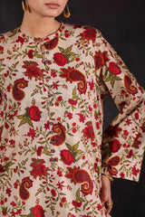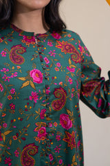 A classic-fit printed shirt with a round neckline and loop buttons along the front slit. Paired with matching printed culottes for an easy, coordinated look.
