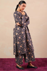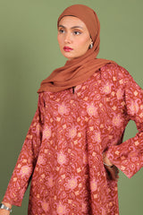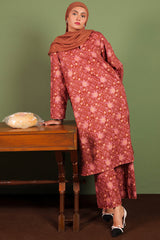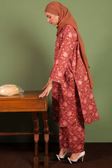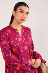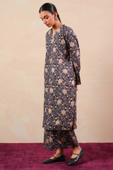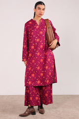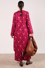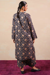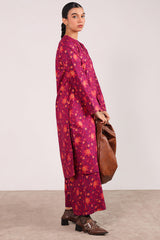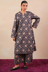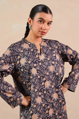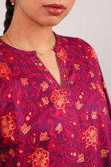 A classic-fit printed shirt with round and V-neckline, adorned with delicate stitching details on neckline and sleeve hems. Paired with matching printed culottes for a coordinated, stylish look.