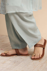 Embroidered classic-fit paneled shirt with a low band neckline and a buttoned front placket, embroidery enhanced with panni work. Comes with an inner for added comfort and ease. Paired with a coordinated classic-fit shalwar featuring embroidered border detailing along the hemline.