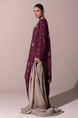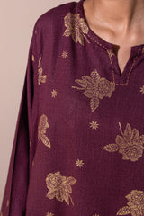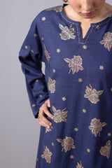 Classic-fit printed shirt with a round neckline and V-slit, adorned with delicate stitching detail. Paired with matching printed culottes for a relaxed yet refined look.
