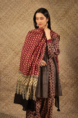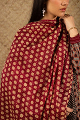 Ajrak-inspired printed dupatta, crafted in a lightweight fabric for an airy drape. Finished with delicate tassel detailing along the edges.