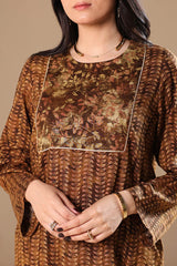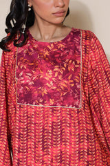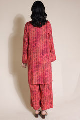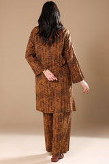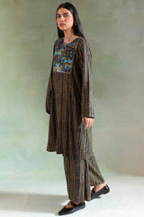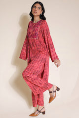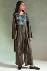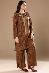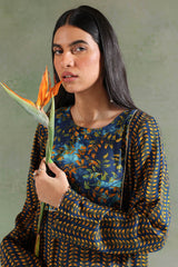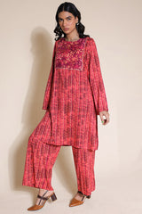 A classic-fit printed shirt with lace detailing on the bodice. Paired with matching printed culottes for a coordinated look.