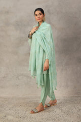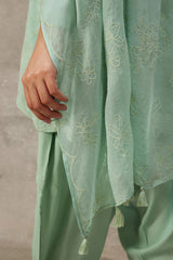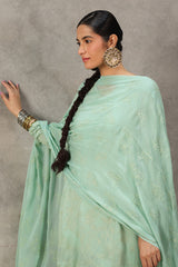 A floral embroidered dupatta adorned with intricate floral motifs, enhanced with tassel accents along the edges. A harmonious fusion of elegance and charm.