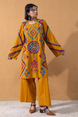 Classic -fit shirt adorned with vibrant appliqué and delicate embroidered detailing. Finished with a back keyhole neckline. Paired with classic culottes for an easy, contemporary look.