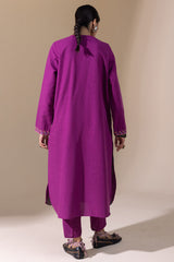 Embroidered straight-fit shirt featuring a keyhole neckline, adorned with delicate stitching details and finished with a rounded hem. Paired with straight-fit trousers.