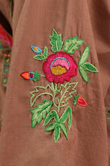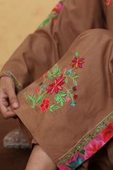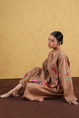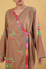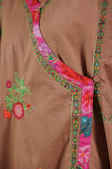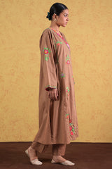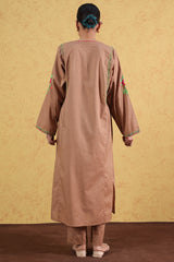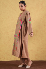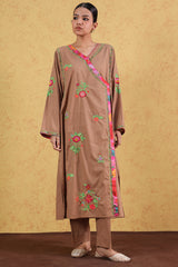 Hand-embroidered angrakha-style paneled shirt, adorned with delicate handcrafted detailing throughout and finished with a printed border. Paired with classic straight-fit trousers.