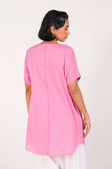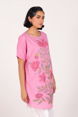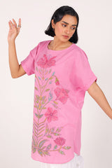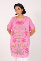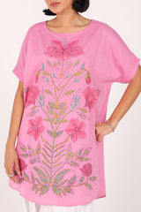 A loose-fit hand-embroidered shirt featuring a round neckline and delicate the front features fine, intricate embroidery that highlights its handcrafted charm Finished with subtle stitching on the sleeve hems. Pair it with any Generation bottoms for an effortlessly graceful look.