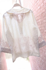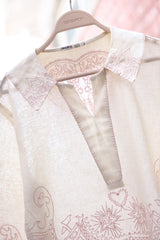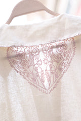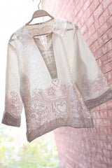 An embroidered top with a collared neckline and overlap placket, detailed with fine stitching. Designed with drop shoulders and turn-up sleeves, it strikes the perfect balance between laid-back ease and standout style.
