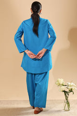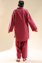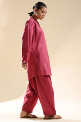 Embroidered classic-fit shirt designed with a V-band neckline and softly rounded hem. Paired with a classic-fit shalwar.