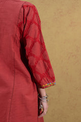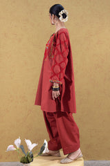 Hand-crafted paneled shirt adorned with delicate embroidered detailing throughout. Paired with a classic-fit shalwar, finished with subtle quilting detail along the hemline.