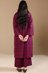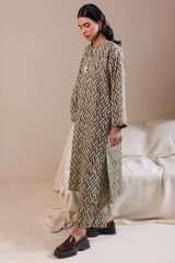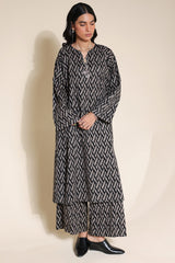A classic fit printed kurta with a round neckline and V-slit, adorned with playful tassel detailing. Paired with matching printed culottes.