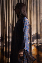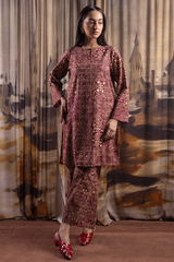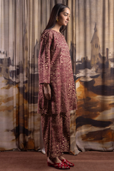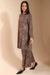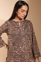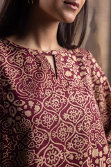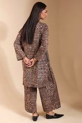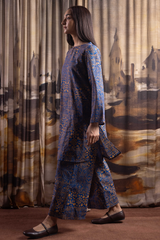 A classic-fit, printed paneled shirt with a round neckline and a V-cut detail. Paired with matching printed culottes.