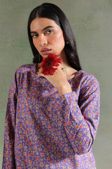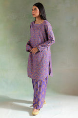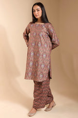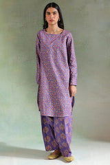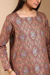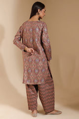 A classic-fit gold-printed shirt with  a square neckline and a round hem. Paired with a matching printed classic-fit shalwar