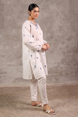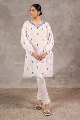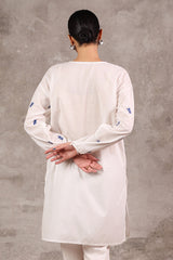 A hand-embroidered paneled kurta with a round neckline and V-slit, adorned with delicate embroidery. Cinched sleeves add structure to the silhouette. Can be paired with any Generation lowers.